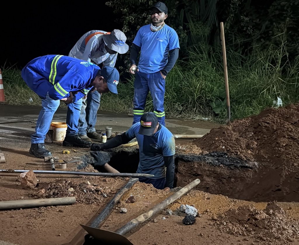 No Jardim Paraíso, um grande vazamento comprometeu o abastecimento na noite de sábado (22). A equipe trabalhou até as 23h para solucionar o problema. O superintendente Rogério Pires acompanhou os trabalhos de perto, garantindo suporte à equipe.