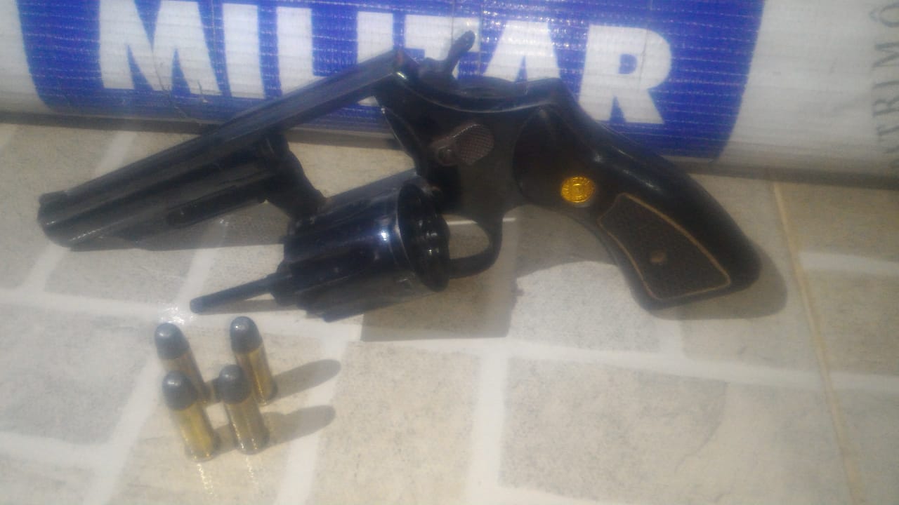 Além disso, uma arma de fogo, tipo revólver, calibre .22 com onze munições intactas, foi apreendido na posse de um dos infratores da lei, o mesmo proprietário da residência.