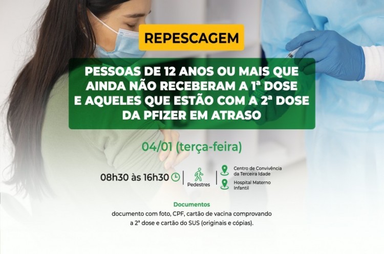 A imunização acontecerá nesta terça-feira (04), das 08 horas e 30 minutos às 16 horas e 30 minutos em dois pontos de vacinação: Centro de Convivência da Terceira Idade e Hospital Materno Infantil.