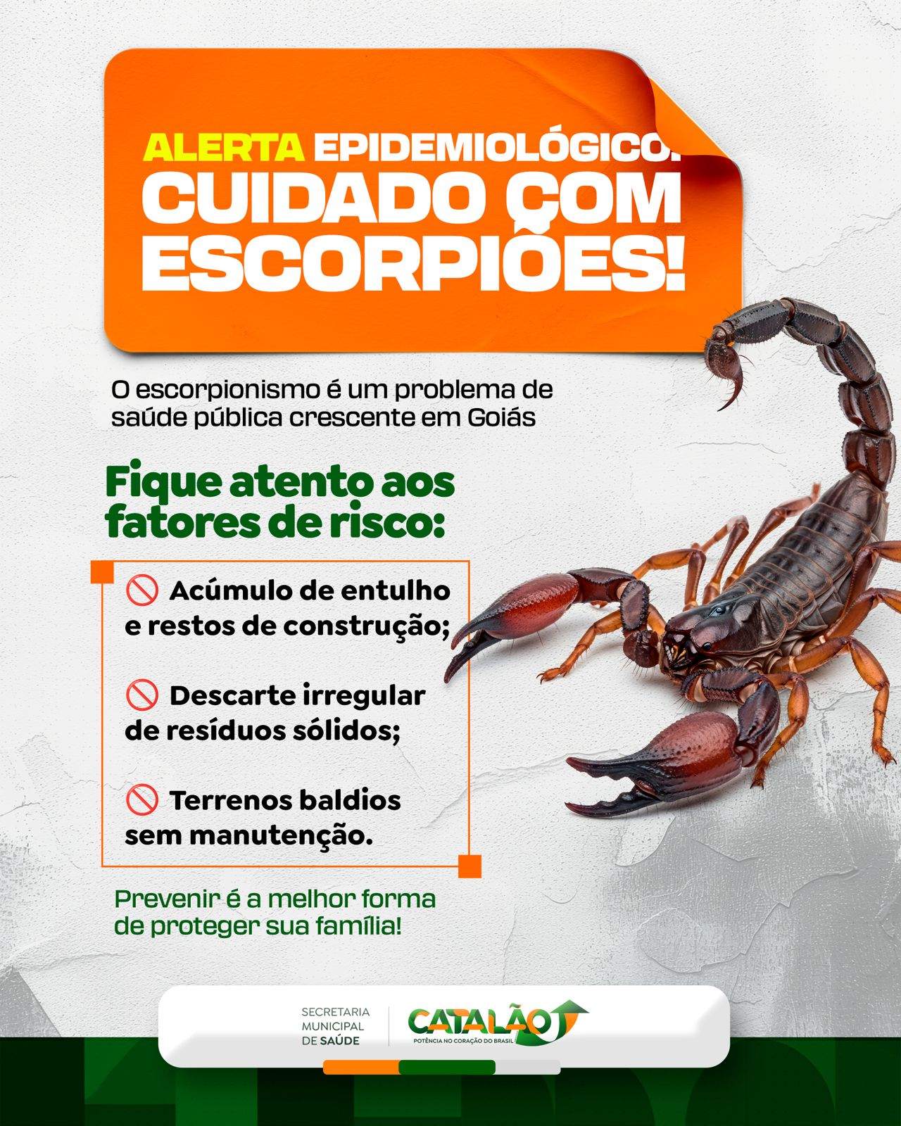 A Prefeitura de Catalão, por meio da Secretaria Municipal de Saúde, publicou nesta semana um novo informe epidemiológico alertando a população sobre o crescimento progressivo dos casos de acidentes causados por picadas de escorpiões no município.