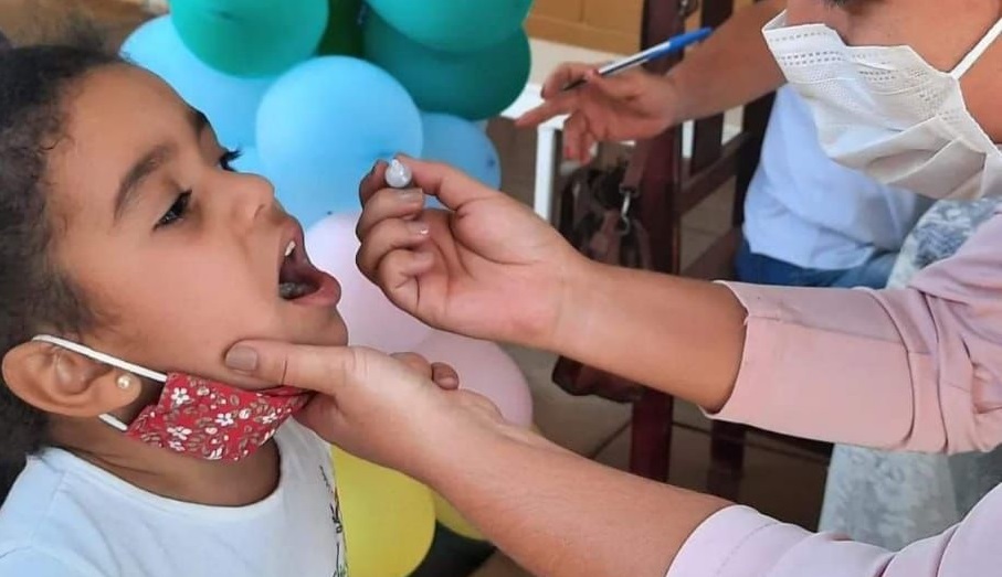A poliomielite é a doença que causa a paralisia infantil. A vacinação é voltada às crianças de 12 meses a menores de 5 anos de idade.