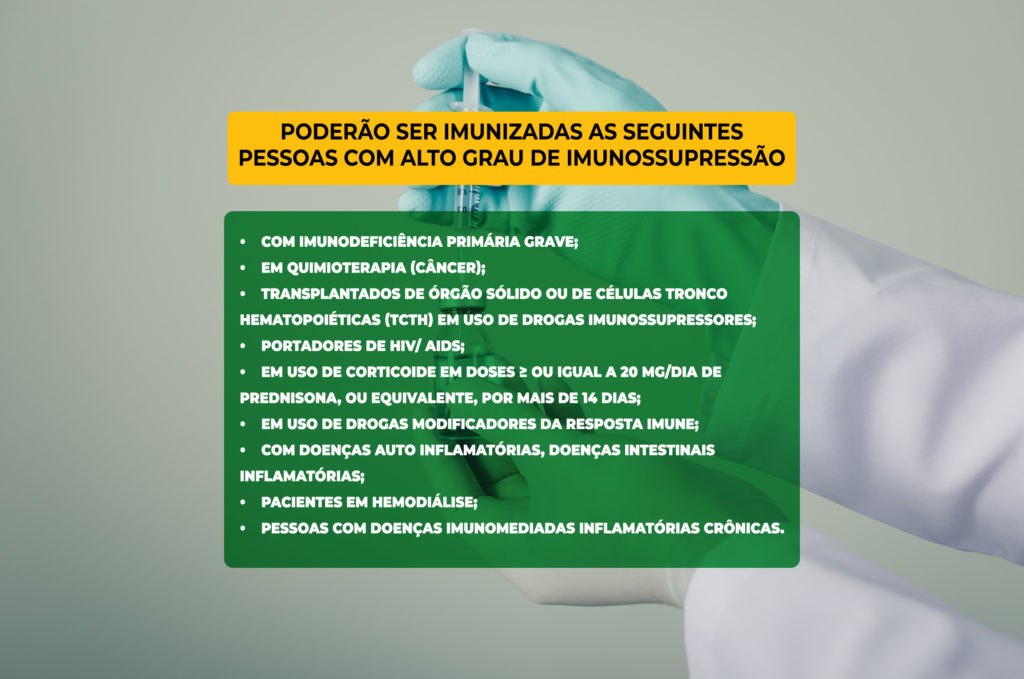 • transplantados de órgão sólido ou de células tronco hematopoiéticas (TCTH) em uso de drogas imunossupressores;