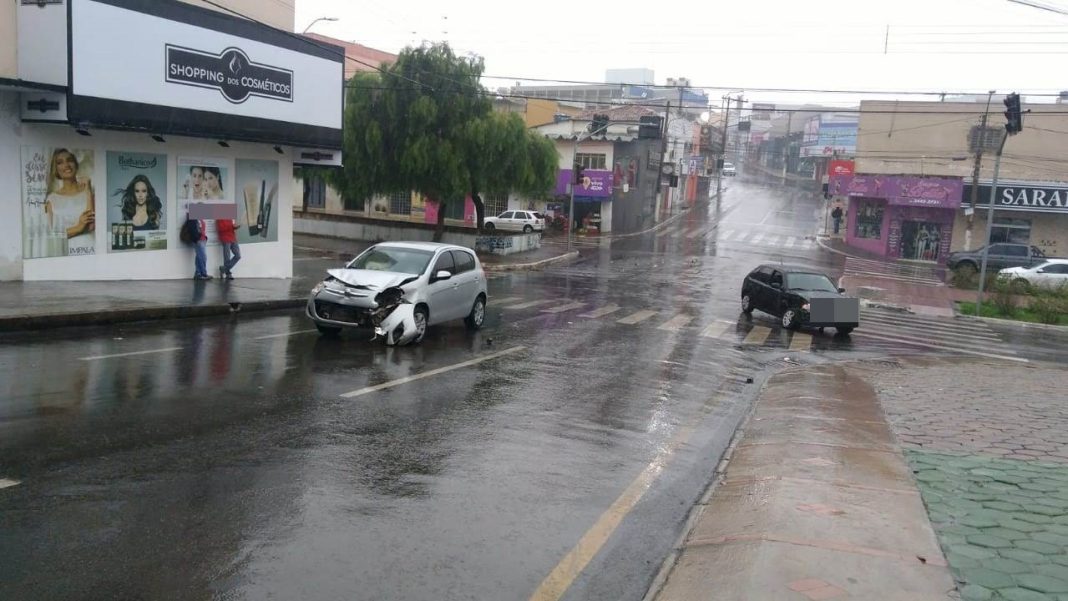 Segunda-feira (03) começa com acidente de trânsito; carros batem no semáforo da Caixa Econômica no cruzamento da Avenida Raulina