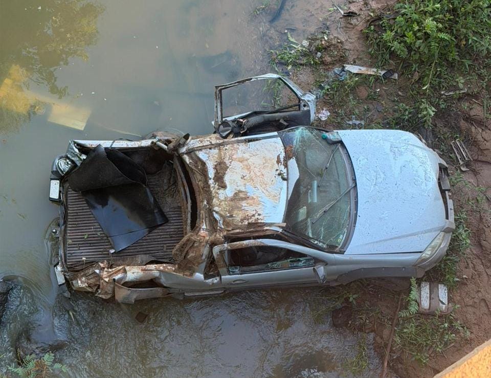 Fiat Strada cai de ponte na GO-330, em Ouvidor