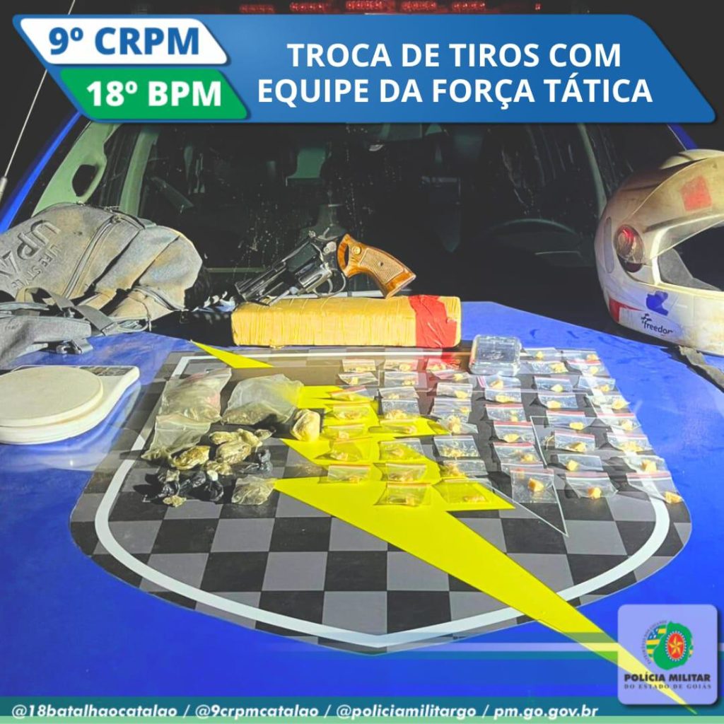 Na noite de ontem (11), uma operação da equipe da Força Tática do 18º BPM, resultou na morte de um indivíduo não identificado após um confronto com as forças de segurança, em Catalão. O incidente ocorreu por volta das 22h30, no distrito de Pires Belo, na GO-506, envolvendo múltiplas infrações, incluindo tráfico de drogas, porte ilegal de arma e recuperação de veículo furtado.