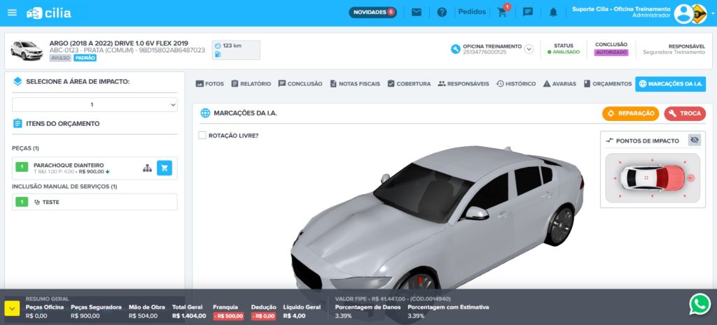 A empresa goiana Cilia Tecnologia, em parceria com o Centro de Excelência em Inteligência Artificial (CEIA) da Universidade Federal de Goiás (UFG), além do apoio da Fundação de Amparo à Pesquisa do Estado de Goiás (Fapeg), lidera essa inovação. O sistema utiliza imagens sintéticas — geradas digitalmente — para treinar uma inteligência artificial capaz de identificar e calcular os danos nos veículos.