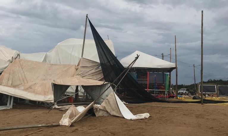 O correspondente do Blog do Badiinho na cidade do lago azul, Vinícius Martins, informou que a estrutura de tendas montadas no parque aquático foram praticamente todas destruídas ao serem arrancadas pela força das rajadas de vento, além de vários brinquedos terem sido danificados. Uma monitora do parque aquático e um rapaz de cerca de 18 anos, ambos moradores de Três Ranchos, tiveram ferimentos leves.
