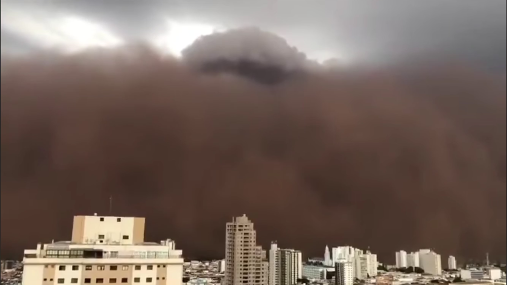 “Pela janela, eu vi a nuvem de poeira vindo para a direção do meu apartamento e fiquei bem assustada. Na verdade, parecia que o mundo estava acabando, sabe? Quando encobriu o bairro, o condomínio onde eu moro, fiquei com bastante medo. Foi questão de uns quatro minutos e ficou tudo escuro”, afirmou ela, que observou o fenômeno por volta das 16h30.