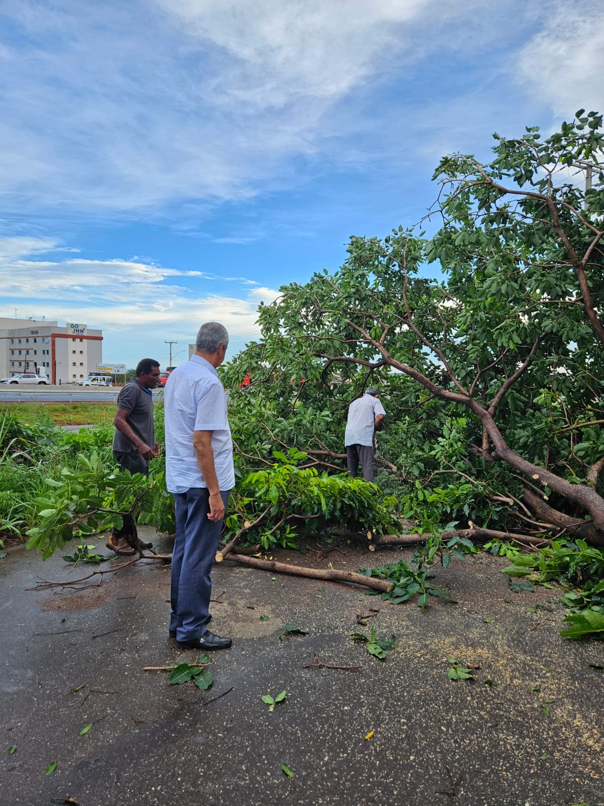 O prefeito Velomar acompanhou de perto as equipes de trabalho nos principais locais de Catalão afetados pelas fortes chuvas na tarde desta quarta-feira (22). No Bairro Santa Terezinha, na Avenida L-1, várias árvores caíram, e a Superintendência Municipal de Trânsito de Catalão (SMTC) sinalizou a área. Enquanto isso, os servidores da Secretaria de Infraestrutura começaram a cortar os galhos para liberar o tráfego.