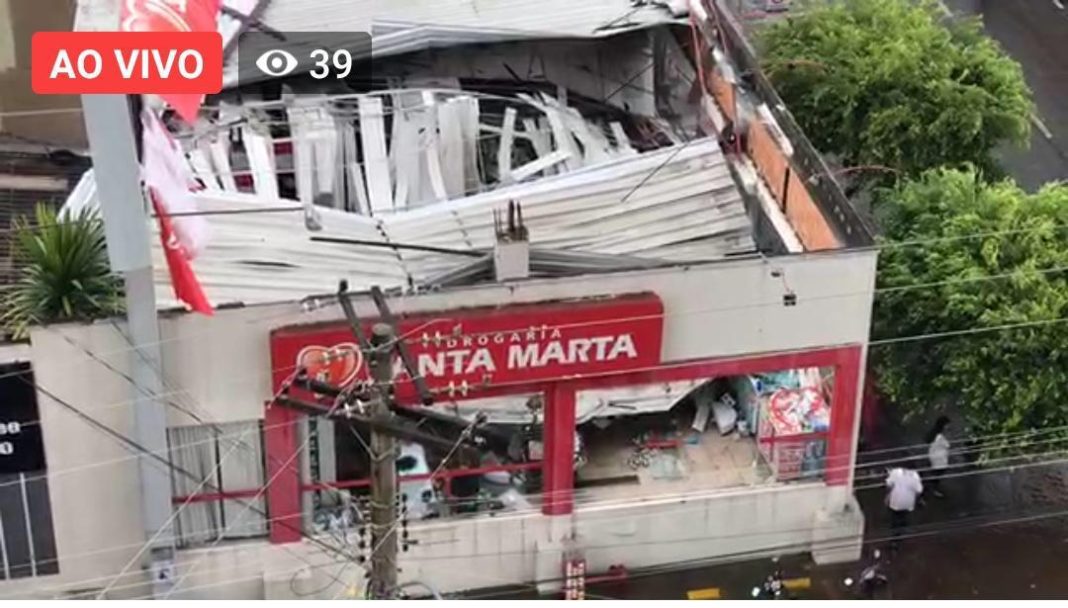 Telhado de uma farmácia foi arrancado com a força do vento. Foto: Facebook/Reprodução