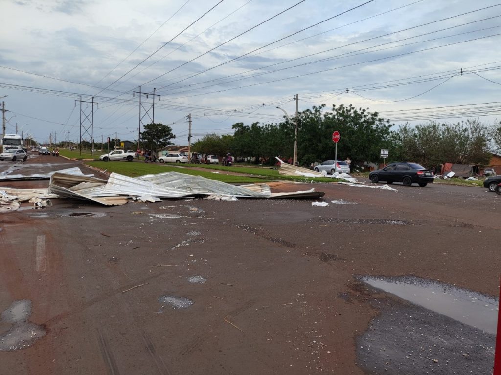 Durante o temporal, telhas e outros materiais arrancados pelo vento atingiram a rede elétrica, derrubando fios energizados em vias públicas. Os casos aconteceram na Avenida Doutor Celso Maeda, em frente ao Supermercado Reis, e na Rua Pedro Alves Cabral, no Bairro Afonso Pena.