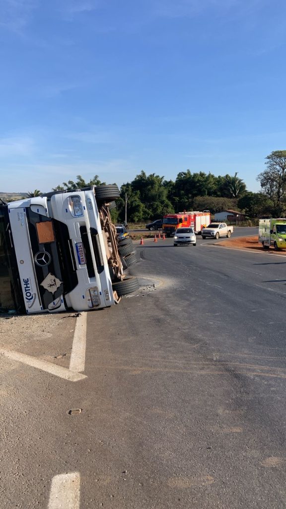 Na tarde deste sábado (14), uma carreta que transportava defensivos agrícolas tombou na BR-050, próximo ao viaduto do bairro Castelo Branco, em Catalão (GO). Apesar do susto, ninguém se feriu.