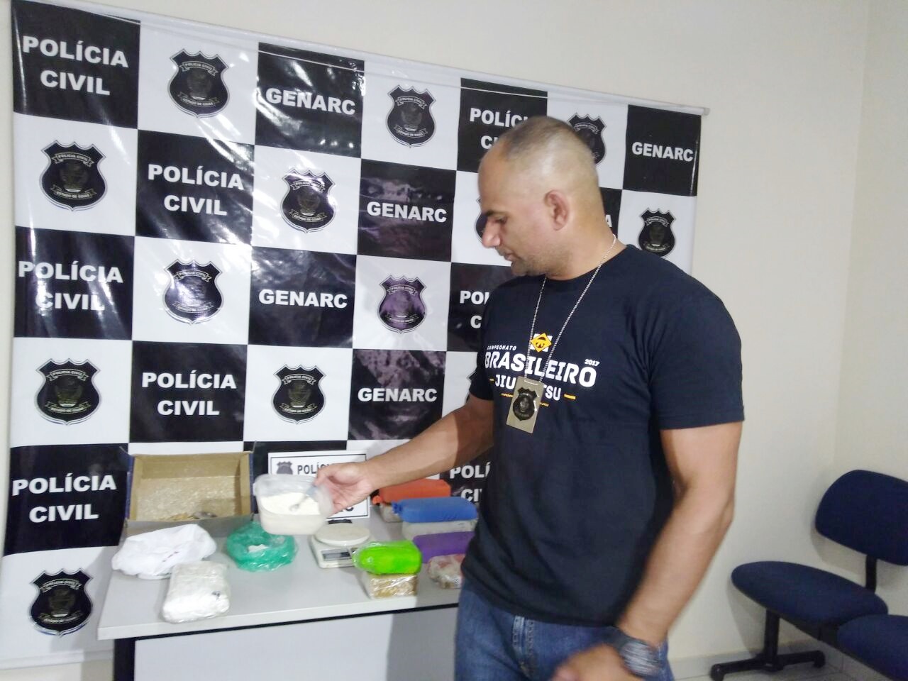 Em uma investigação que durou aproximadamente cinco meses, a Polícia Civil conseguiu prender em uma oficina mecânica, que segundo o delegado de polícia responsável pelo Genarc, o homem estava usava o comercial como fachada para poder traficar a droga sem chamar a atenção dos policiais.