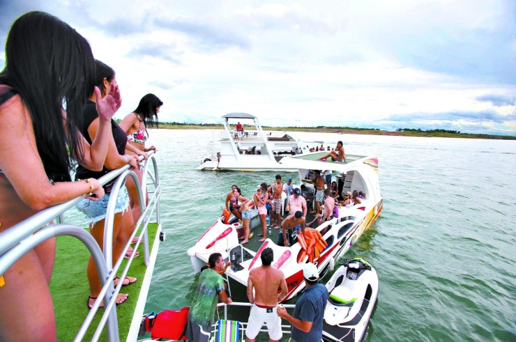 É grande a animação dos foliões em uma praia artificial montada com 280 toneladas de areia, na orla do Lago Azul, em Três Ranchos, neste feriado prolongado de carnaval. A atração inédita na cidade, o local, conhecido como prainha, reúne crianças, jovens e adultos e uma variedade de ritmos, com predominância do funk. Outra parte do município concentra carros de som automotivo.