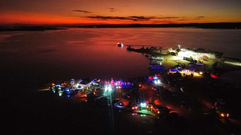 Às noite, imagens de drone revelaram a beleza das cores das luzes em meio à animação dos moradores e turistas às margens do Lago Azul. Nessa época, o lago teve uma das elevações mais históricas do nível da água para garantir a beleza do local e contribuir economicamente ao município.