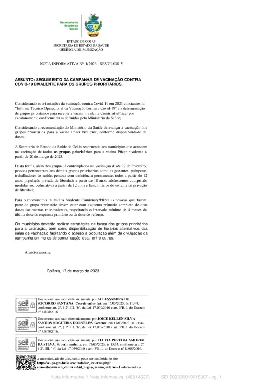 “Com o objetivo de alcançarmos o maior número de pessoas possível, independentemente da data do cronograma do Ministério da Saúde, a partir da próxima segunda-feira a vacina bivalente já estará disponível para todas as pessoas que integram os grupos prioritários”, informou a superintendente de Vigilância em Saúde da SES, Flúvia Amorim.