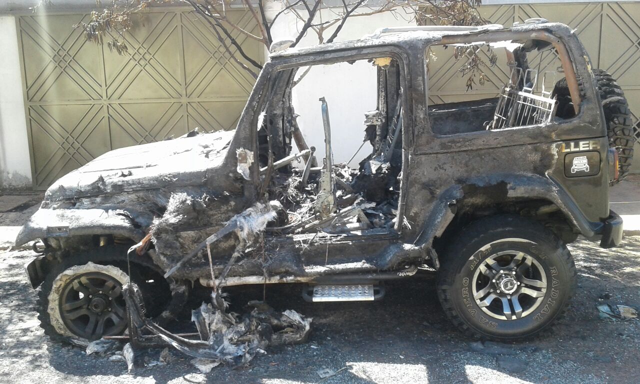 O veículo Troller/T4 TDI 3.0, de propriedade do blogueiro Emival Mamede Leão do Blog do Mamede, o qual também é diretor da Universidade Estadual em Pires do Rio e diretor da Rádio Comunitária Cidade FM na vizinha cidade de Ouvidor, ficou completamente destruído após um incêndio misterioso, ocorrido por volta das 18h10 de ontem, quinta-feira (07). O veículo do comunicador e educador estava estacionado na porta de sua casa, na Rua Ana Paula, no bairro Leblon, em Catalão.