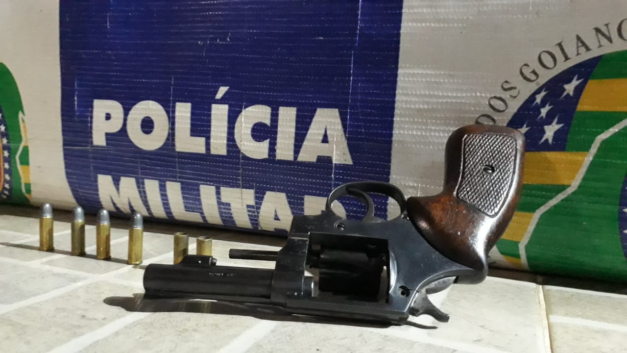 Após realizar buscas em suspeitos que estavam em um Disk Bebidas e em seus respectivos veículos, uma arma de fogo tipo revólver, calibre ponto 32, com quatro munições intactas e duas deflagradas foi localizada com um homem de 38 anos. O infrator da lei foi preso em flagrante e a arma de fogo foi apreendida.