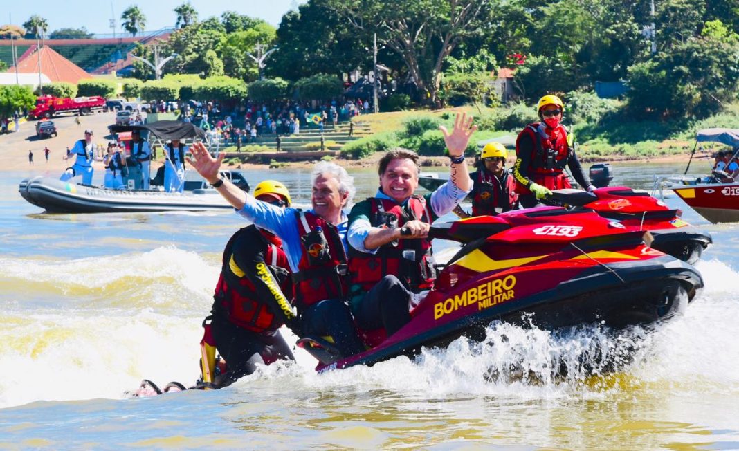 Nesta última visita, Bolsonaro não ficou sem dar suas tiradas que ganham repercussão na mídia, e deu um rolezinho em um jet ski do Corpo de Bombeiros levando o Governador Caiado na garupa. Veja o vídeo: