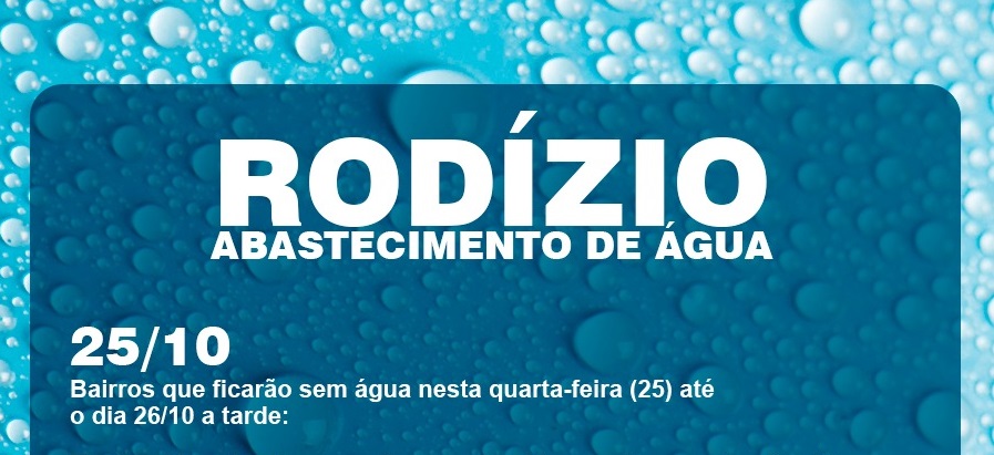 Ao total, serão 17 bairros que ficarão sem água a partir de hoje, quarta-feira (25), até a tarde de amanhã, quinta-feira (26). Segue lista abaixo: