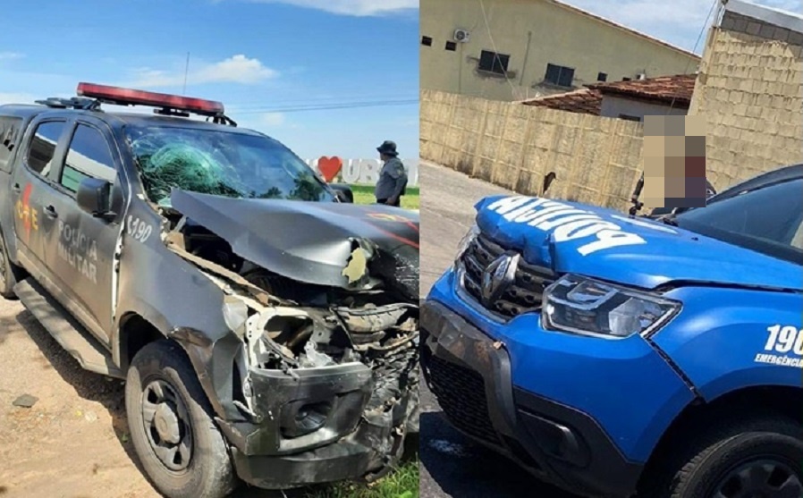O motorista do veículo de passeio e os policiais da viatura envolvida não se feriram.