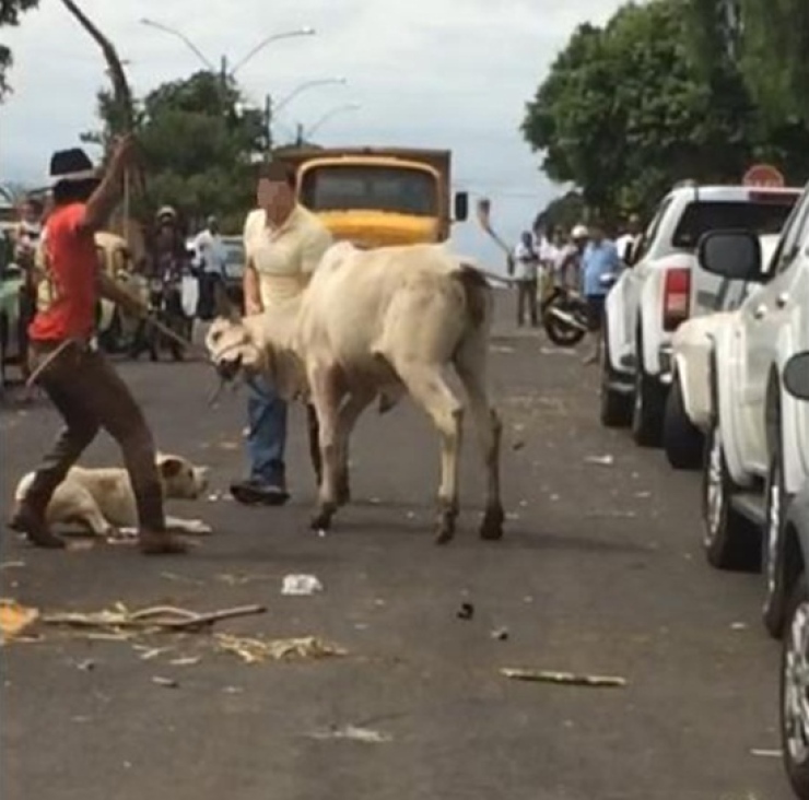O caso aconteceu na tarde de sábado (25) em uma rua do Jardim Primavera. Segundo os moradores, o bezerro era levado pelo dono, puxado por uma corda.