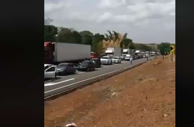 Entre os vídeos que estão sendo compartilhados, um deles teria sido feito na BR 060, em Anápolis Goiás, no início da tarde desta segunda-feira (03). Com um aparelho celular, um homem narra uma fila de caminhões, segundo ele, isso era por volta das 13 horas. Assistam o vídeo abaixo: