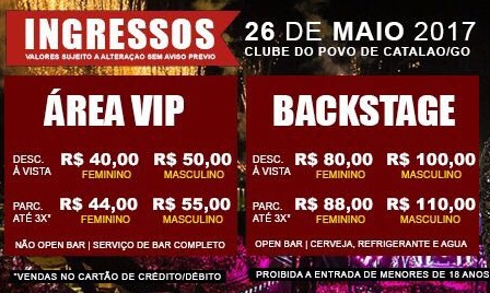 A organização do show da cantora Marília Mendonça, que acontece no próximo dia 26, no Clube do Povo, em Catalão, avisa que hoje, quarta-feira (10), acontece a primeira virada de lote nos preços dos ingressos. Então, se você ainda adquiriu o seu, corra em ponto de vendas e garanta o seu ingresso pelo valor promocional.