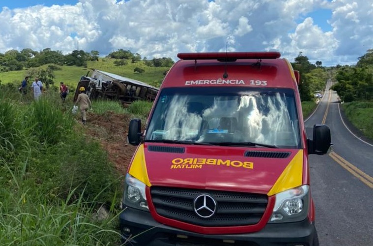 O acidente foi por volta das 11h10, próximo à ponte do Rio Veríssimo. O motorista perdeu o controle do veículo, que saiu da pista e capotou.