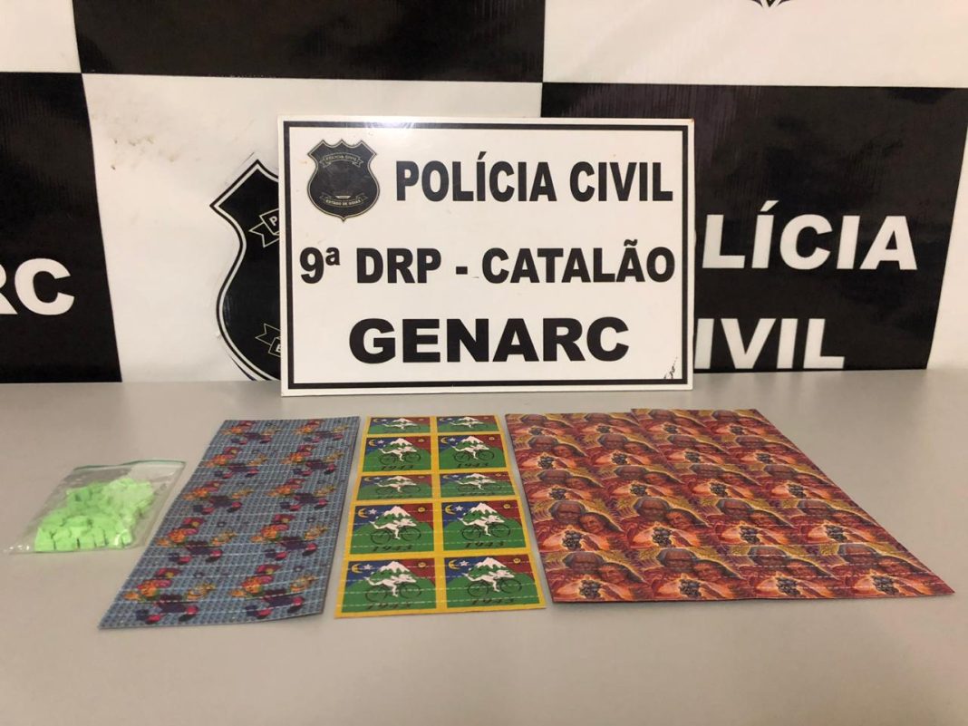 A Polícia Civil de Goiás, através da equipe do Grupo Especial de Repressão a Narcóticos (GENARC/9ª Delegacia Regional de Polícia de Catalão, na tarde de ontem, quarta-feira (07), após o recebimento de denúncias anônimas via aplicativo WhatsApp Denúncia e consistente trabalho de investigação, retirou de circulação traficante de drogas que mantinha em depósito 1.000 pontos da droga “LSD” e 60 comprimidos de “Ecstasy”, numa residência situada no Bairro Monsenhor Souza, em Catalão.